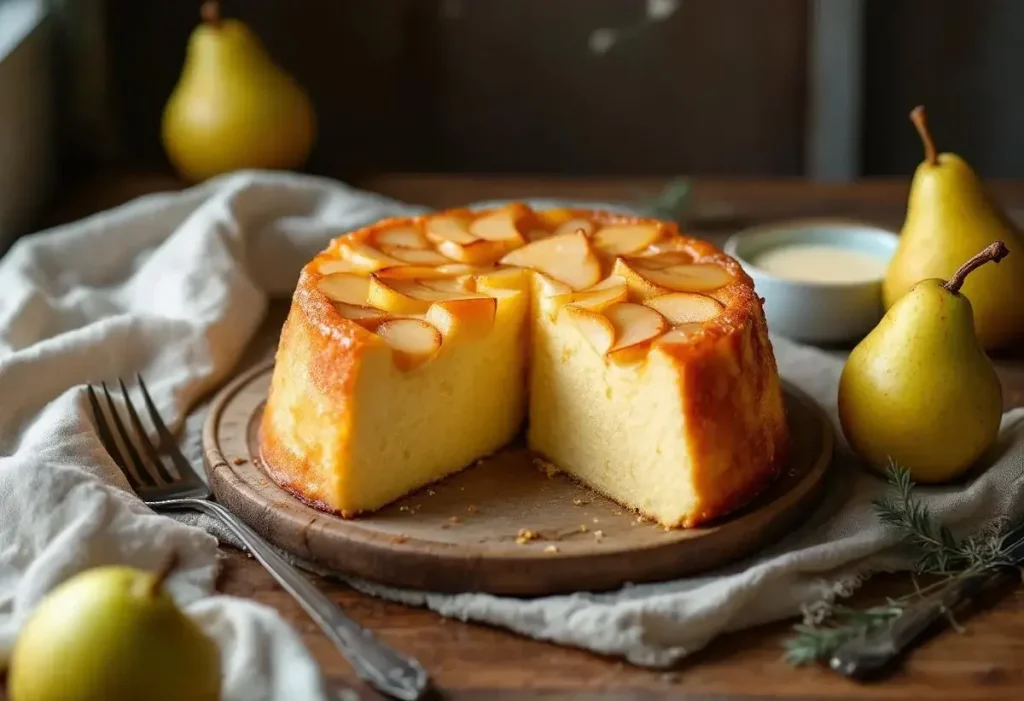 Imaginez un gâteau qui offre à la fois une douceur fondante à l’intérieur et une surface croustillante délicatement dorée. Voici le résultat que vous obtiendrez grâce à une astuce simple mais incontournable : un nappage au beurre fondu et au sucre. Ce mélange crée une fine croûte caramélisée qui rehausse le goût des poires juteuses. C’est un véritable petit miracle de simplicité qui transforme des ingrédients ordinaires en une douce gourmandise.