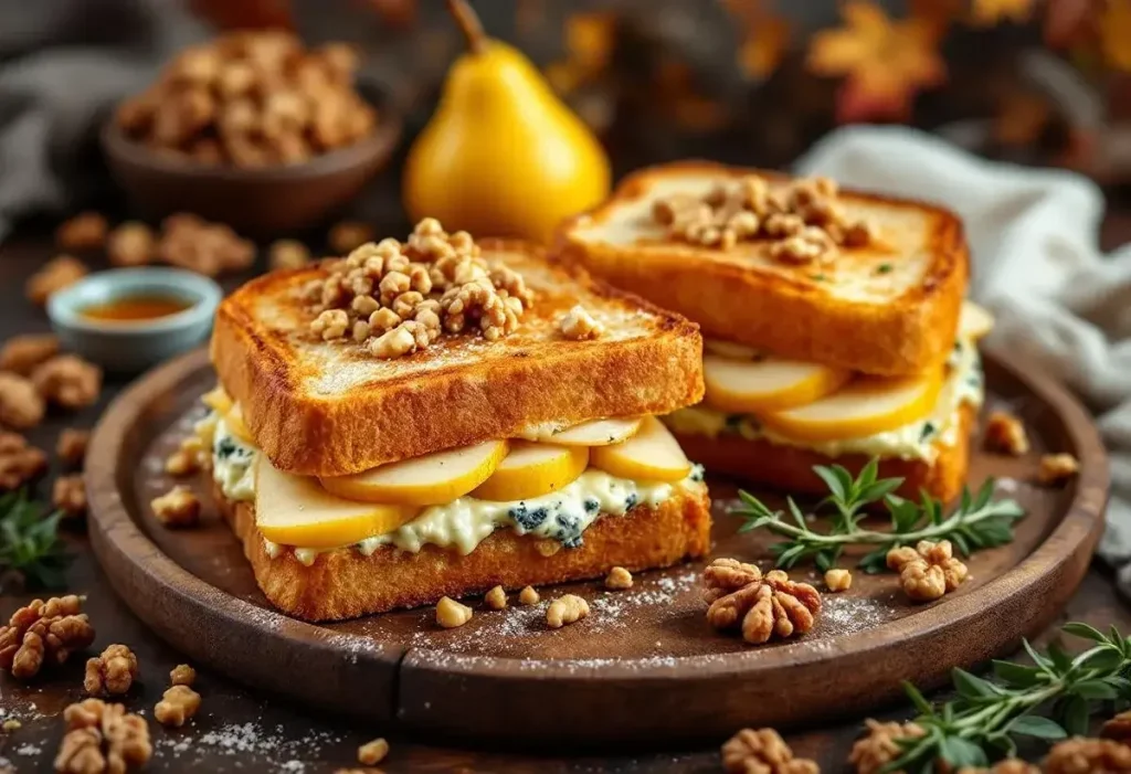 Le croque poire-bleu-noix se distingue par son équilibre entre la douceur fruitée de la poire, le goût puissant du fromage bleu et le croquant des noix. Chaque bouchée offre une texture fondante, tandis que les contrastes de saveurs éveillent les papilles. Les poires, bien juteuses, se marient à merveille avec le fromage persillé, créant un assemblage qui réchauffe le cœur.