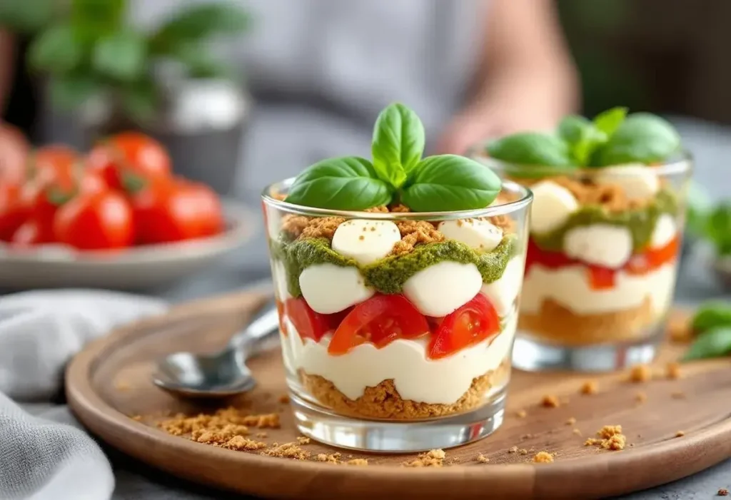 La présentation de votre tiramisu salé est cruciale. Servez-le dans des verrines individuelles pour un effet visuel captivant. Vous pouvez également utiliser un plat à gratin transparent pour mettre en avant les différentes couches.